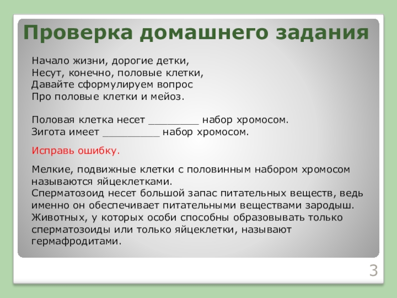 Мелкие, подвижные клетки с половинным набором хромосом называются яйцеклетками.