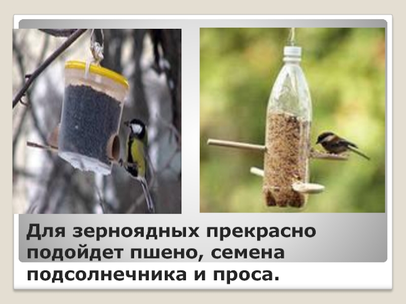 Слайд 8Для зерноядных прекрасно подойдет пшено, семена подсолнечника и проса.