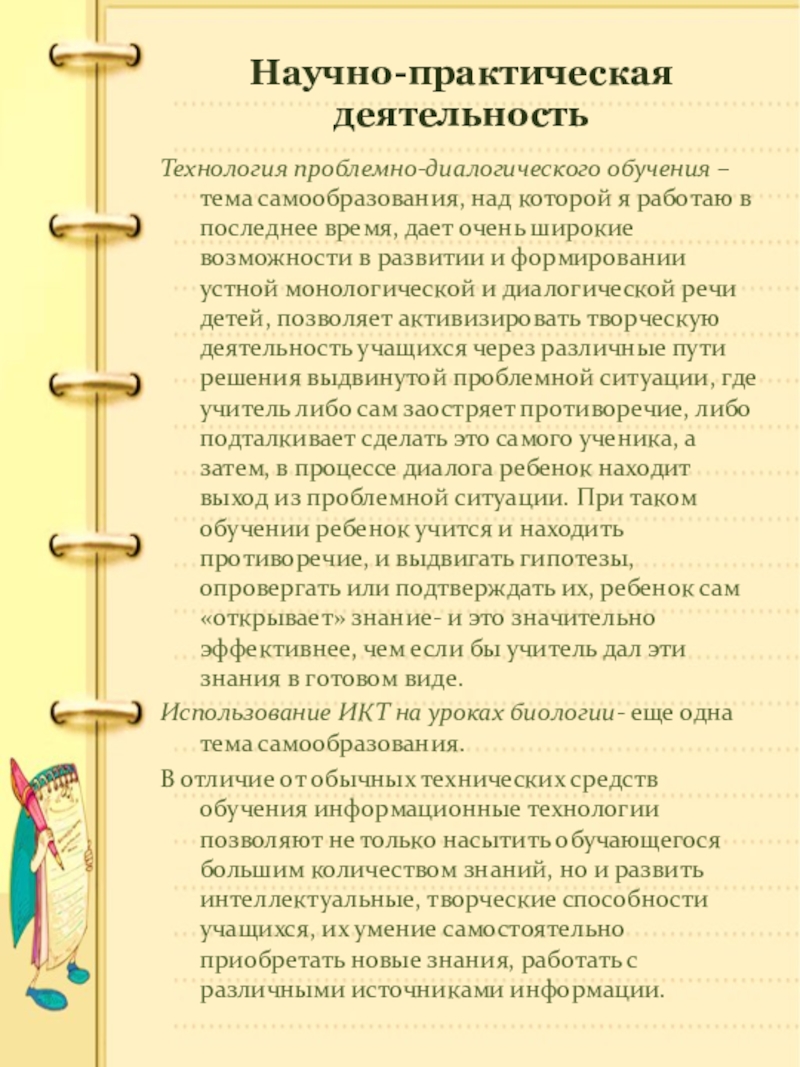 Технология проблемно-диалогического обучения –тема самообразования, над которой я работаю в последнее