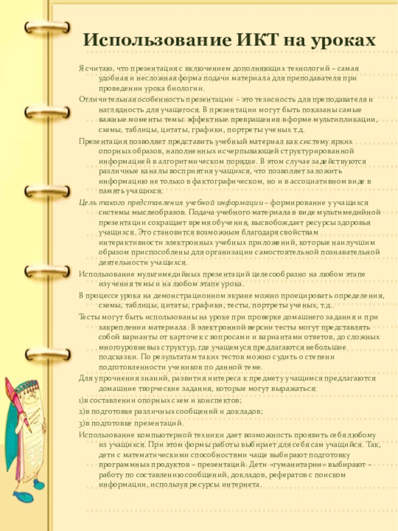 Использование ИКТ на уроках биологии- еще одна тема самообразования.