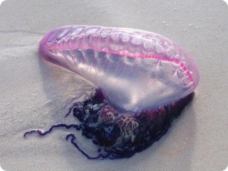 Окрашены физалии очень ярко: парус-пневматофор отливает голубым, фиолетовым и пурпурным цветами.