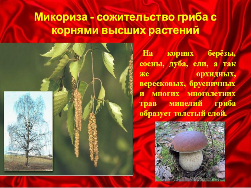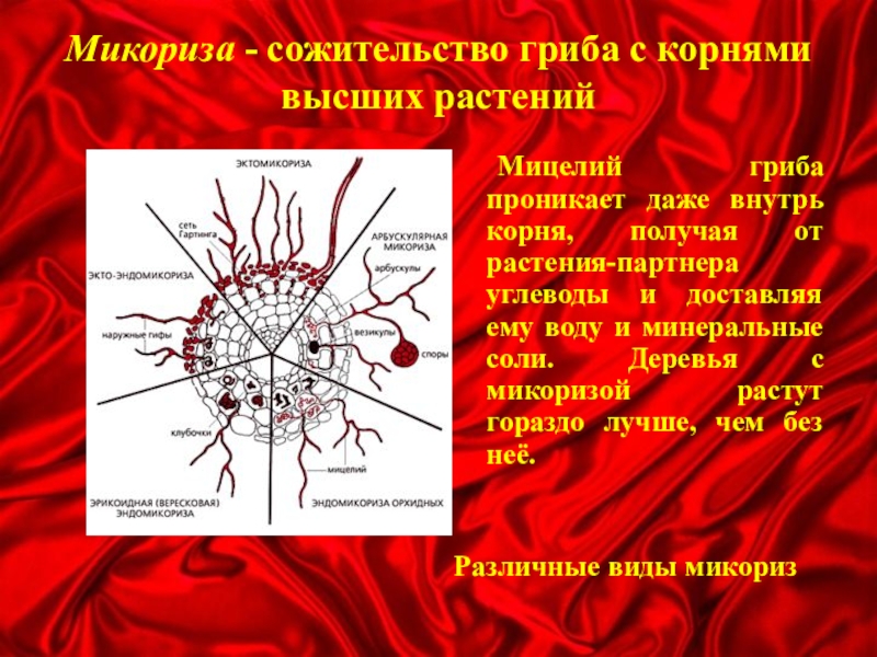 Слайд 19Микориза - сожительство гриба с корнями высших растений
