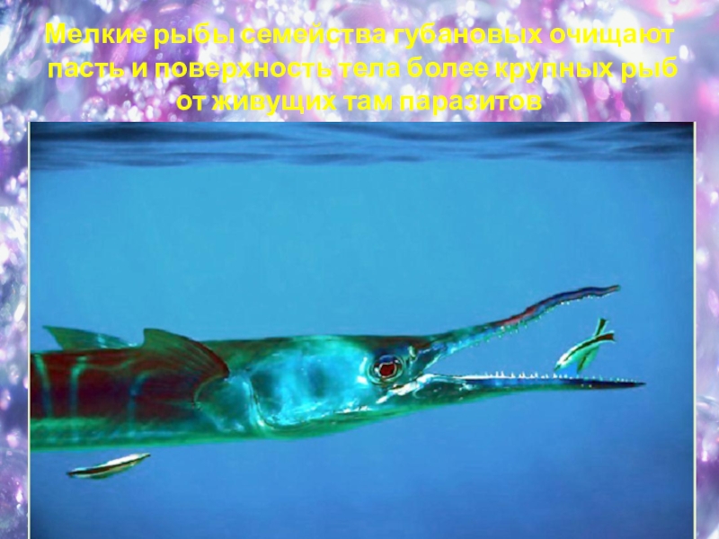 Слайд 7Мелкие рыбы семейства губановых очищают пасть и поверхность тела более крупных