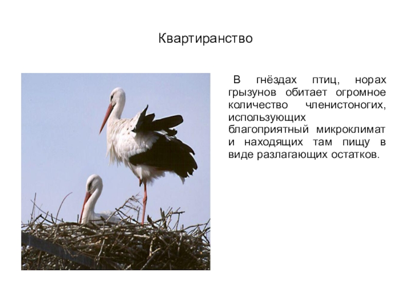 В гнёздах птиц, норах грызунов обитает огромное количество членистоногих, использующих благоприятный