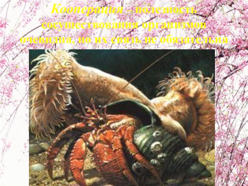 Слайд 3Кооперация – полезность сосуществования организмов очевидна, но их связь не обязательна