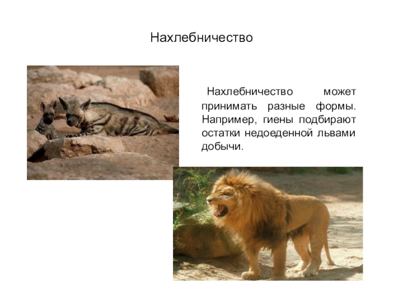 Нахлебничество может принимать разные формы. Например, гиены подбирают остатки недоеденной львами