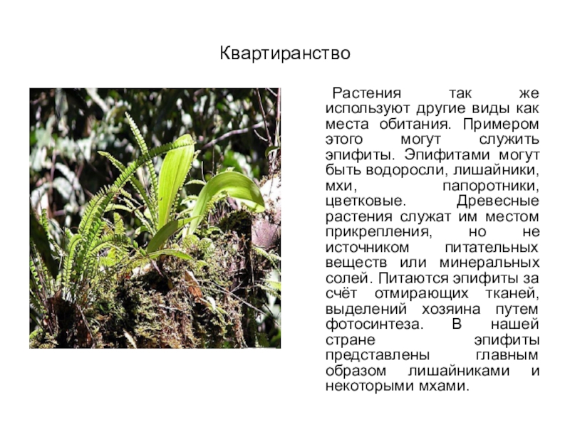Растения так же используют другие виды как места обитания. Примером этого