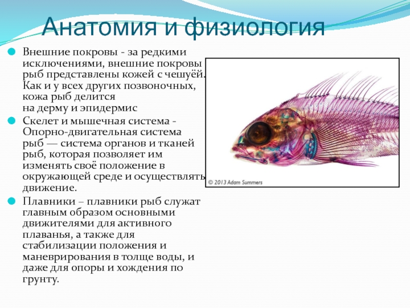 Скелет и мышечная система - Опорно-двигательная система рыб — система органов и тканей рыб, которая позволяет им изменять своё положение в окружающей среде и осуществлять движение.