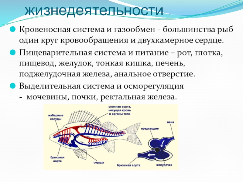 Кровеносная система и газообмен - большинства рыб один круг кровообращения и двухкамерное