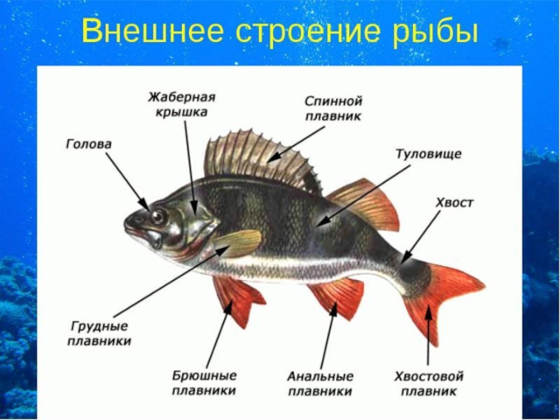 Плавники – плавники рыб служат главным образом основными движителями для активного плаванья, а также для стабилизации положения и маневрирования в толще воды, и даже для опоры и хождения по грунту.