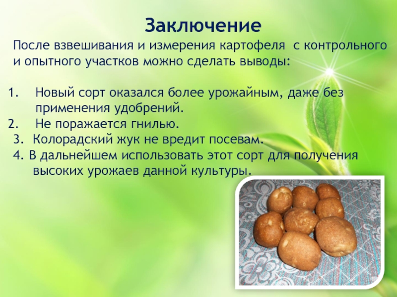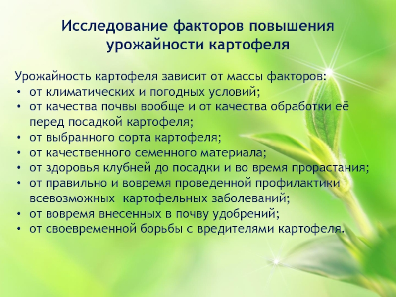 Слайд 8Исследование факторов повышения урожайности картофеля