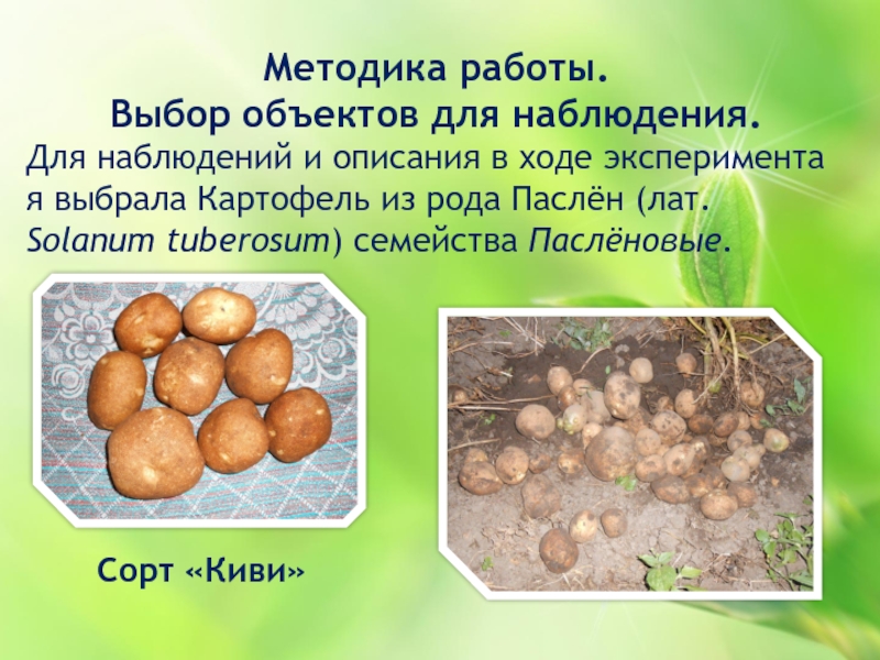 Для эксперимента использовали картофель сорта «Киви». Клубни «Киви» бархатистые, оранжево-коричневого