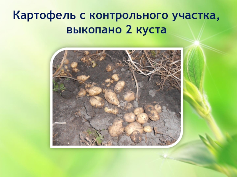 Слайд 14Картофель с контрольного участка, выкопано 2 куста