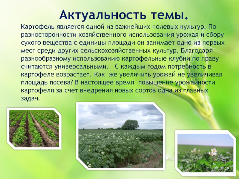 Картофель является одной из важнейших полевых культур. По разносторонности хозяйственного