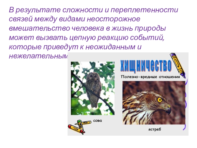 Слайд 6В результате сложности и переплетенности связей между видами неосторожное вмешательство человека