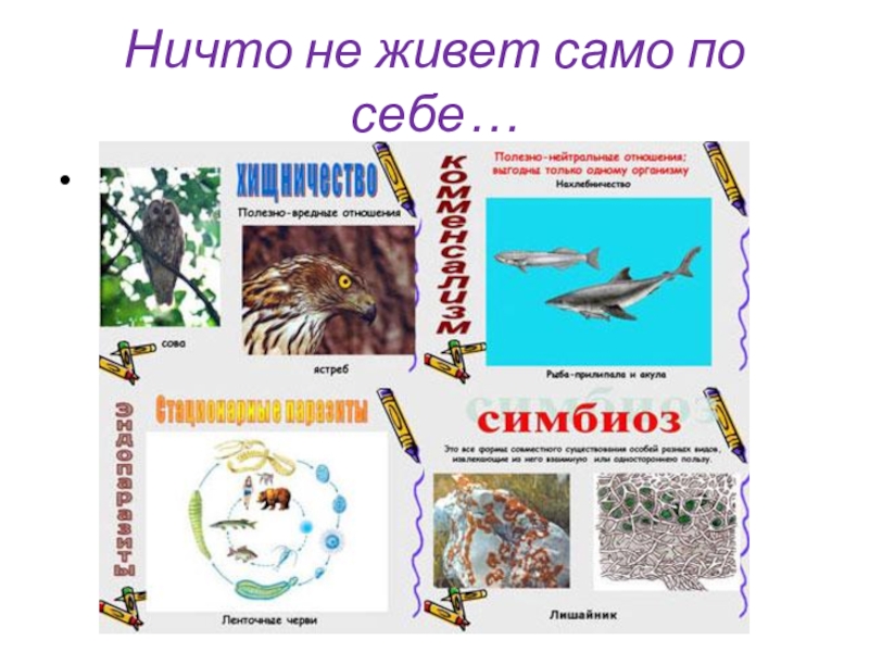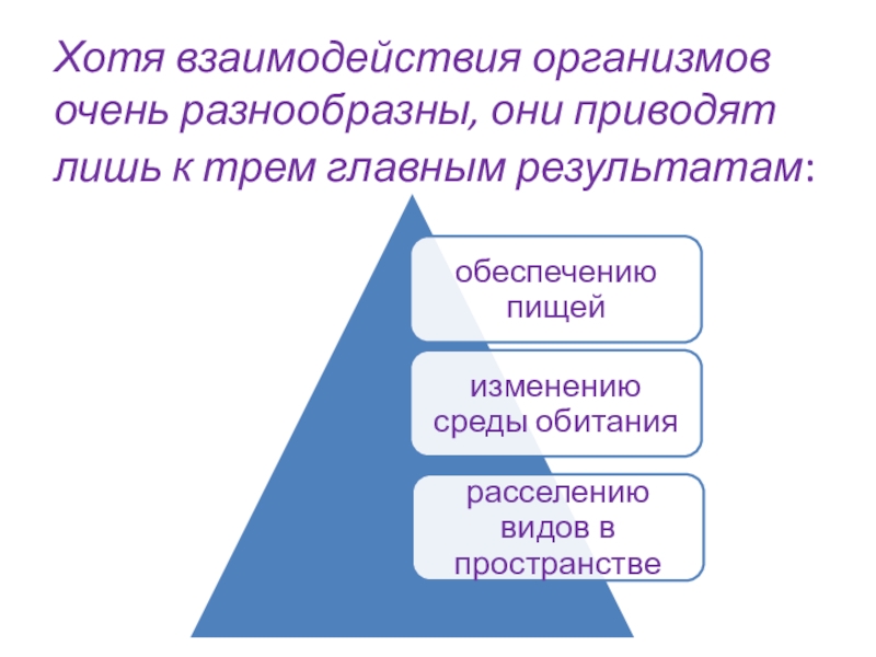 Слайд 5 Хотя взаимодействия организмов очень разнообразны, они приводят лишь к трем главным