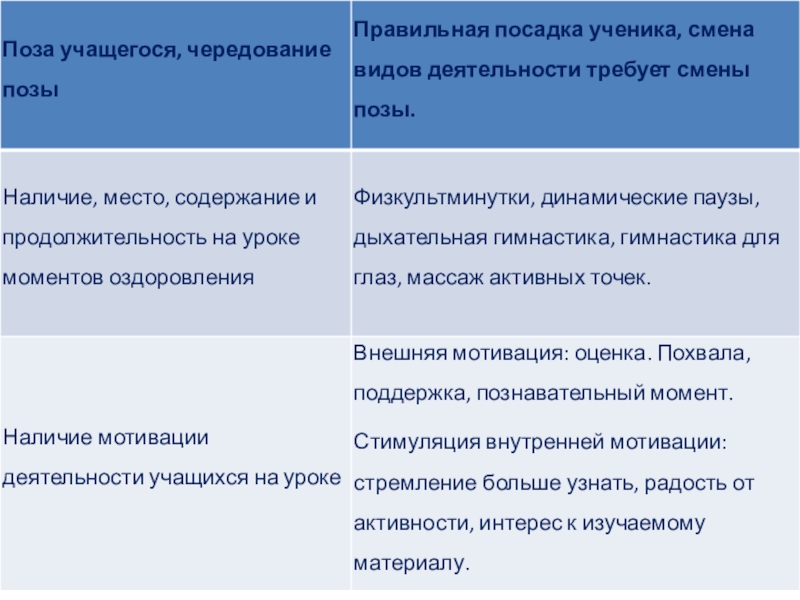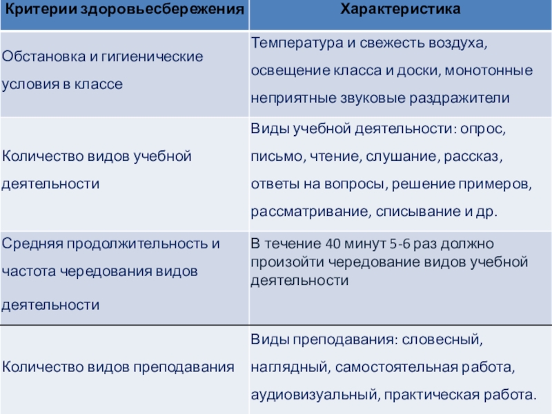 рациональности урока во многом зависит функциональное состояние школьников в процессе учебной деятельности, возможность длительно поддерживать умственную работоспособность на высоком уровне и предупреждать преждевременное нарушение утомления. Решая проблему ценностного отношения учащихся к собственному здоровью, необходимо соблюдать санитарно-гигиенические требования к организации учебно-воспитательного процесса (температурный и воздушный режим, освещение, чистота и порядок в помещении кабинета) в соответствии нормами СанПиНа;