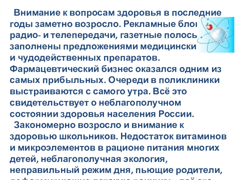Слайд 2 Внимание к вопросам здоровья в последние годы заметно возросло. Рекламные