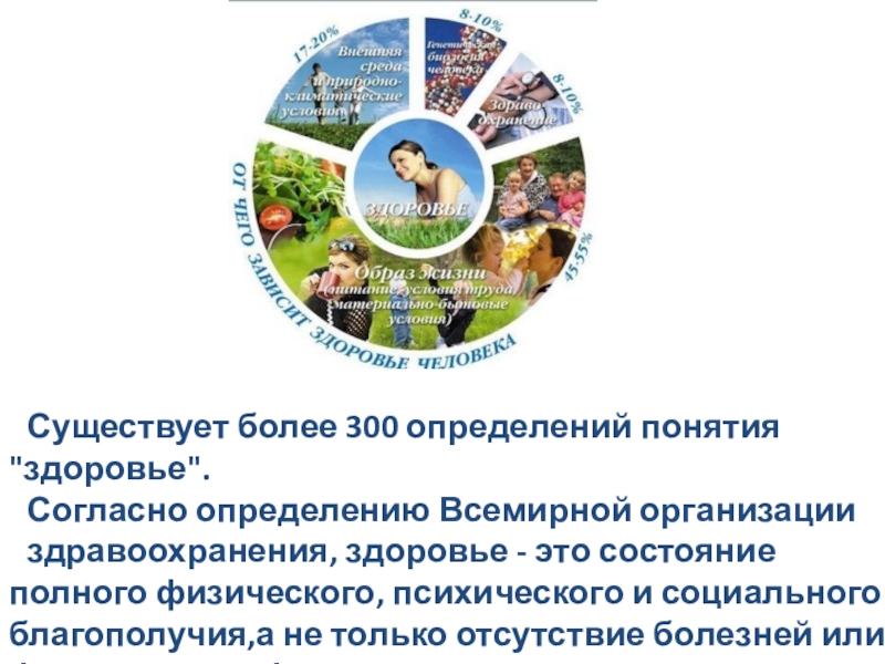 Существует более 300 определений понятия "здоровье".