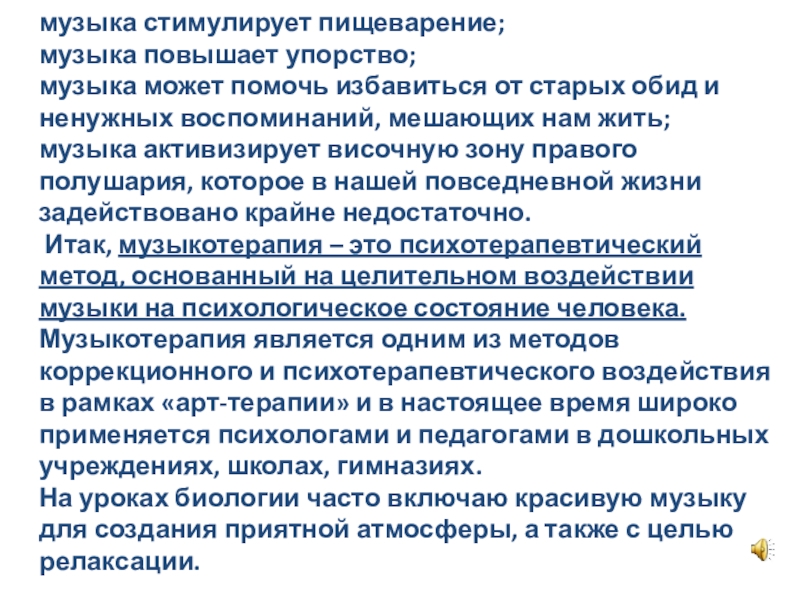 Слайд 58музыка стимулирует пищеварение;