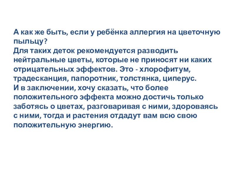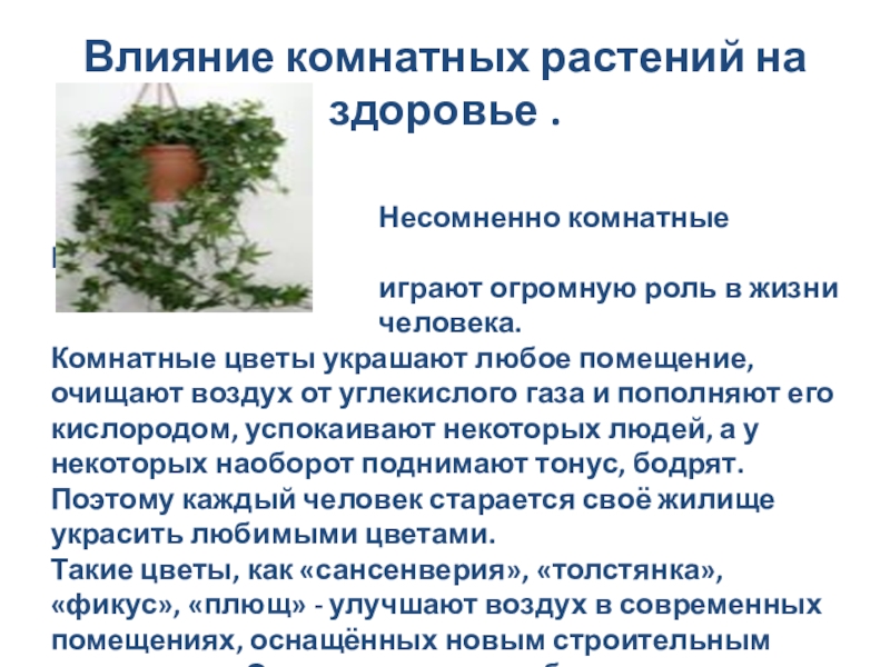 Влияние комнатных растений на здоровье .