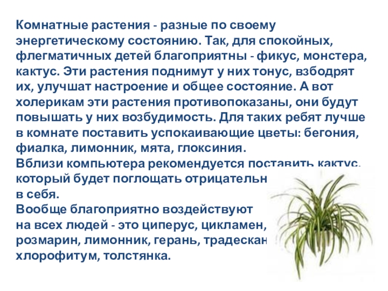 Слайд 61Комнатные растения - разные по своему энергетическому состоянию. Так, для спокойных,
