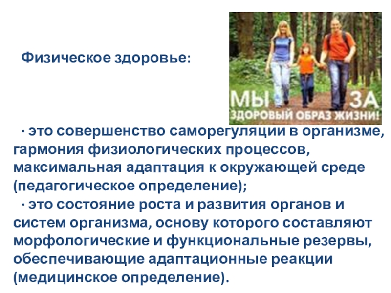 · это совершенство саморегуляции в организме, гармония физиологических процессов, максимальная адаптация к окружающей среде (педагогическое определение);