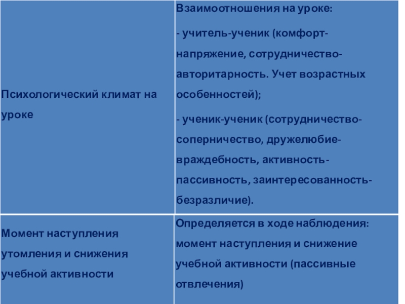 (психологический климат урока);