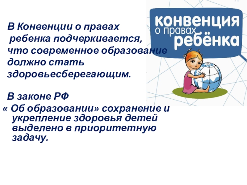 « Об образовании» сохранение и укрепление здоровья детей выделено в приоритетную задачу.