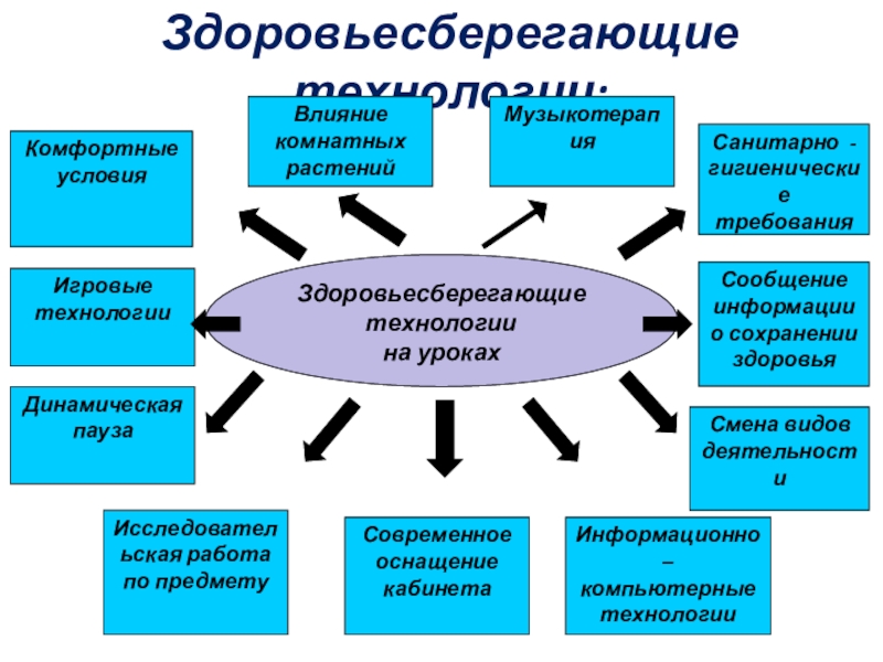 Слайд 23Здоровьесберегающие технологии: