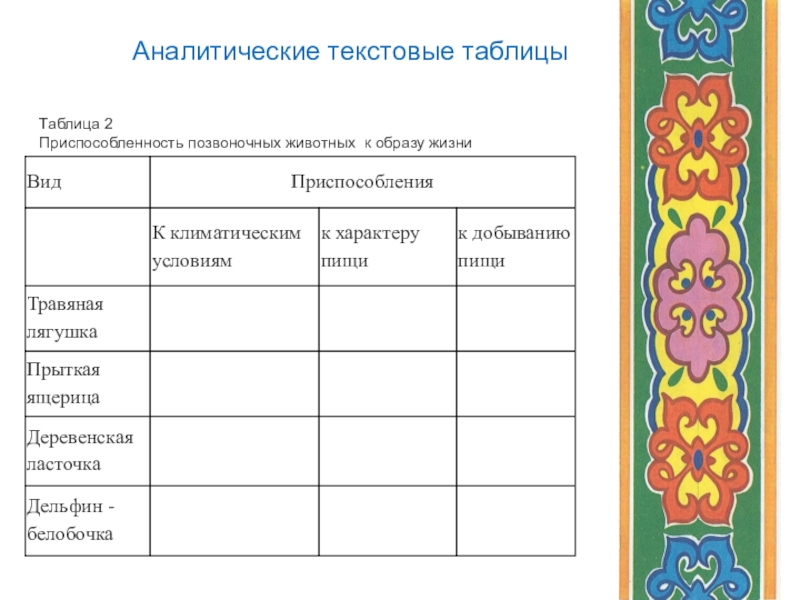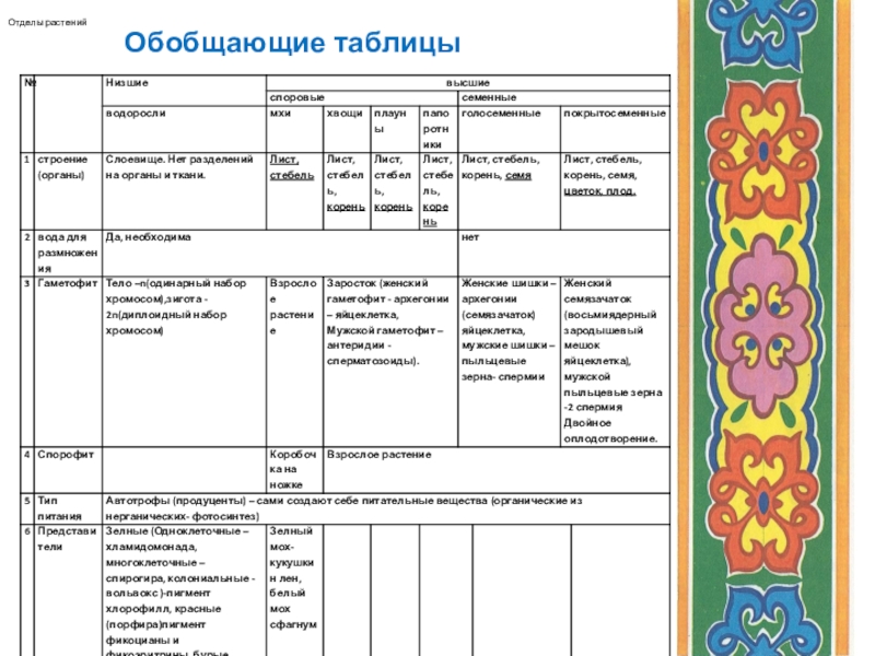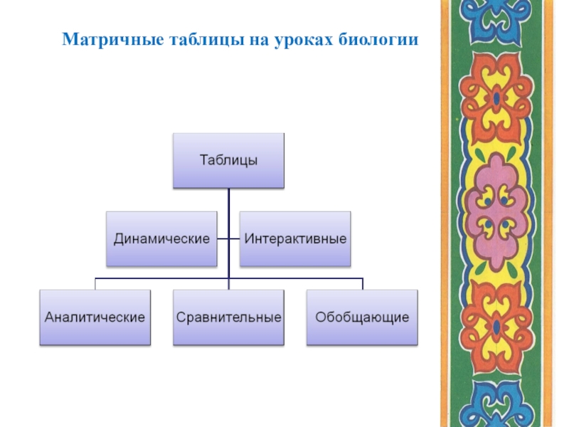 Использование систематизирующих таблиц(матриц) на обобщающих уроках биологии