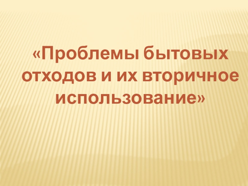 Презентация, доклад Проблемы бытовых отходов и их вторичное использование