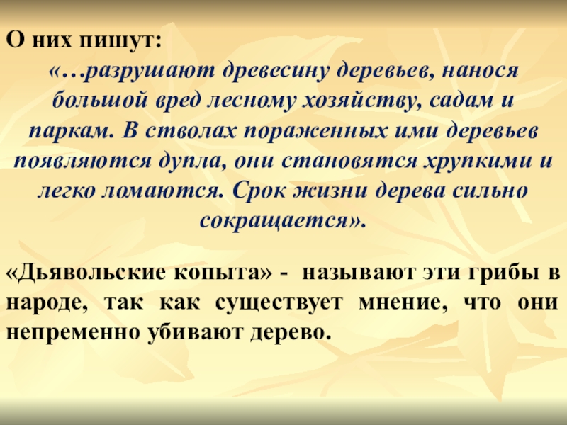 «Дьявольские копыта» - называют эти грибы в народе, так как существует мнение, что они непременно убивают дерево.