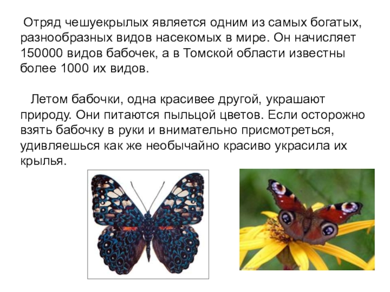 насекомых в мире. Он начисляет 150000 видов бабочек, а в Томской области известны более 1000 их видов.