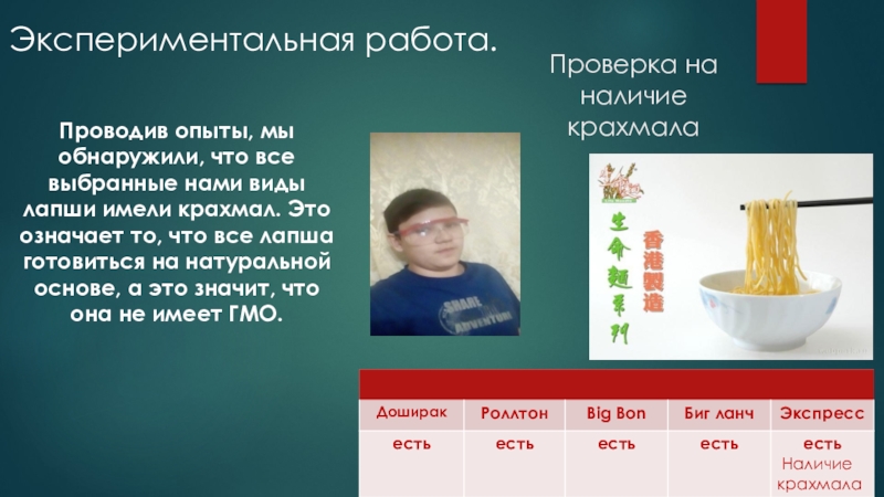виды лапши имели крахмал. Это означает то, что все лапша готовиться на натуральной основе, а это значит, что она не имеет ГМО.