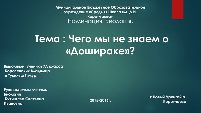 Муниципальное Бюджетное Образовательное учреждение «Средняя Школа им. Д.И.Коротчаева».