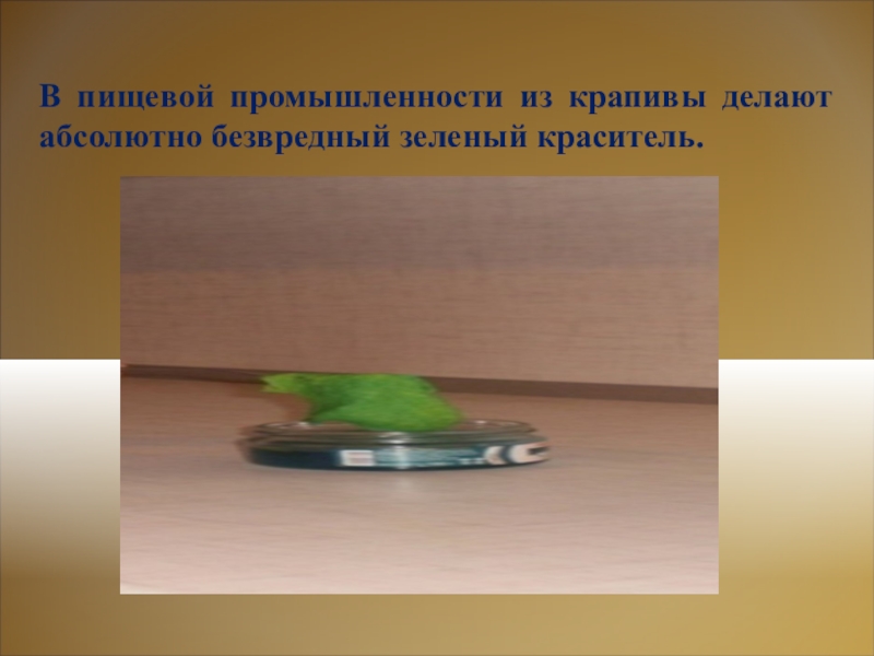 Слайд 8В пищевой промышленности из крапивы делают абсолютно безвредный зеленый краситель.