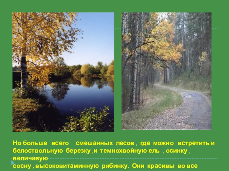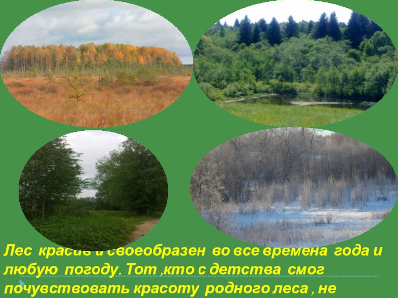 Слайд 6Лес красив и своеобразен во все времена года и любую погоду.