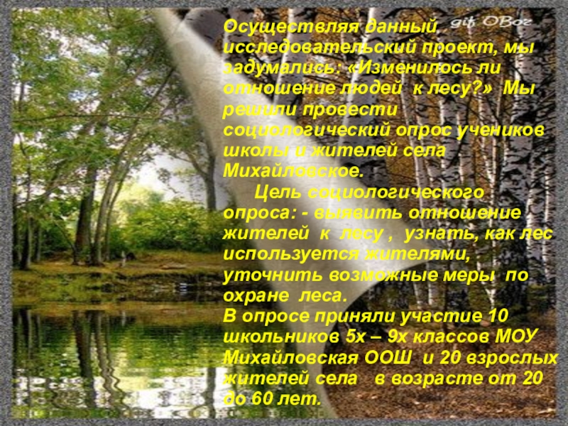лесу?» Мы решили провести социологический опрос учеников школы и жителей села Михайловское.