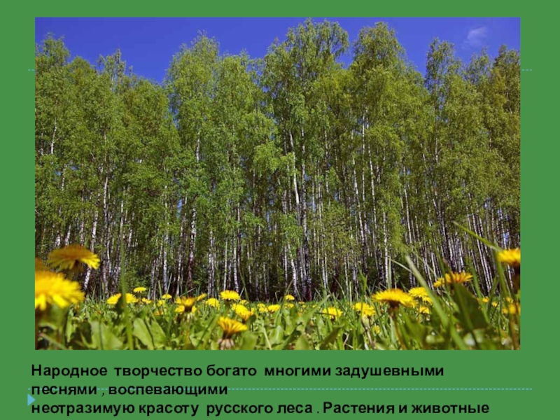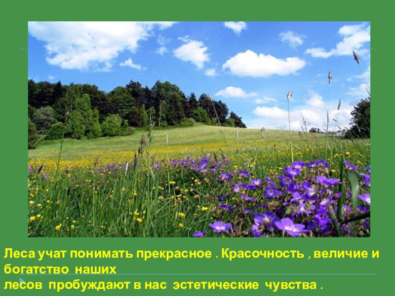 Слайд 7Леса учат понимать прекрасное . Красочность , величие и богатство наших