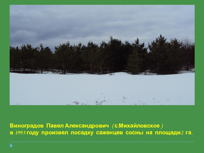 Слайд 34Вот они - эти сосенки сейчас, посаженные Виноградовым