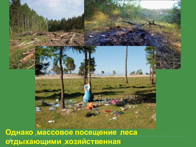 Слайд 28Однако ,массовое посещение леса отдыхающими ,хозяйственная