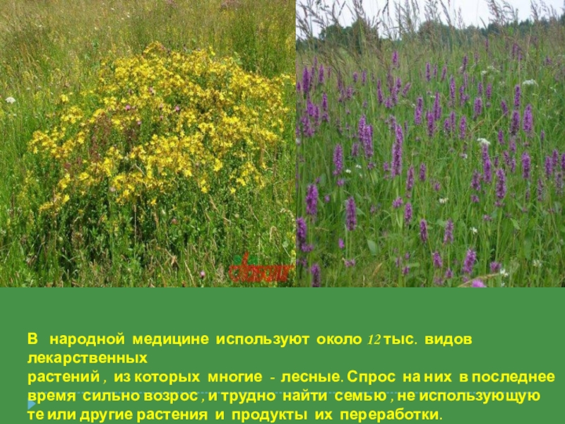Слайд 12В народной медицине используют около 12 тыс. видов лекарственных