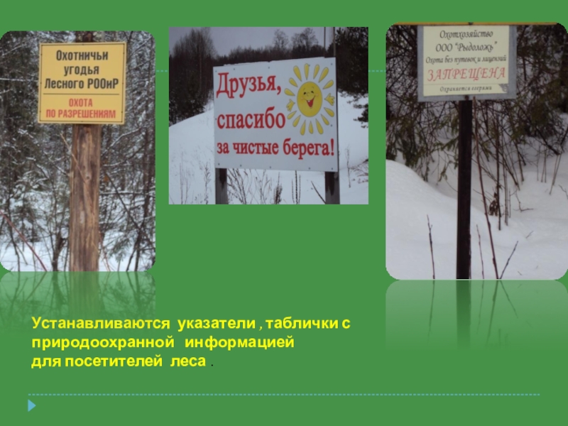 Слайд 36Устанавливаются указатели , таблички с природоохранной информацией