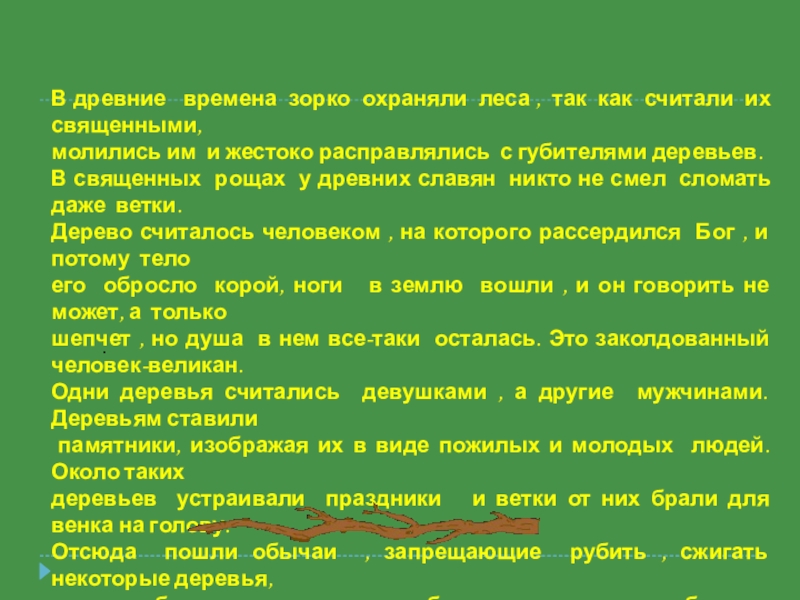 Одни деревья считались девушками , а другие мужчинами. Деревьям ставили