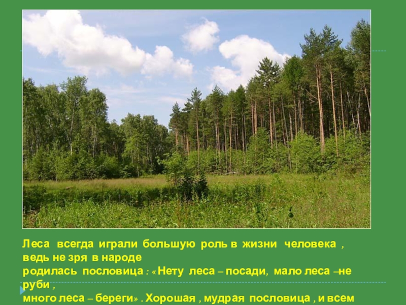 много леса – береги» . Хорошая , мудрая пословица , и всем нам