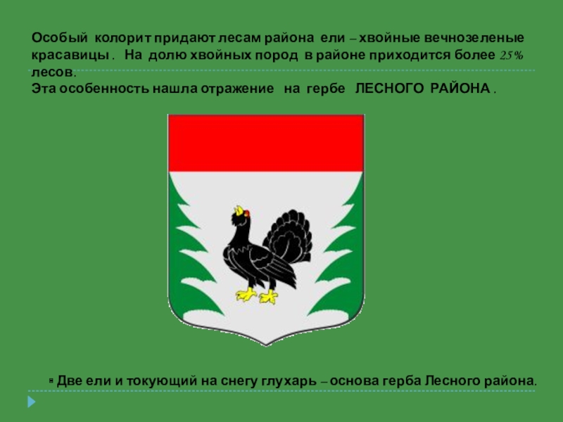 Эта особенность нашла отражение на гербе ЛЕСНОГО РАЙОНА .