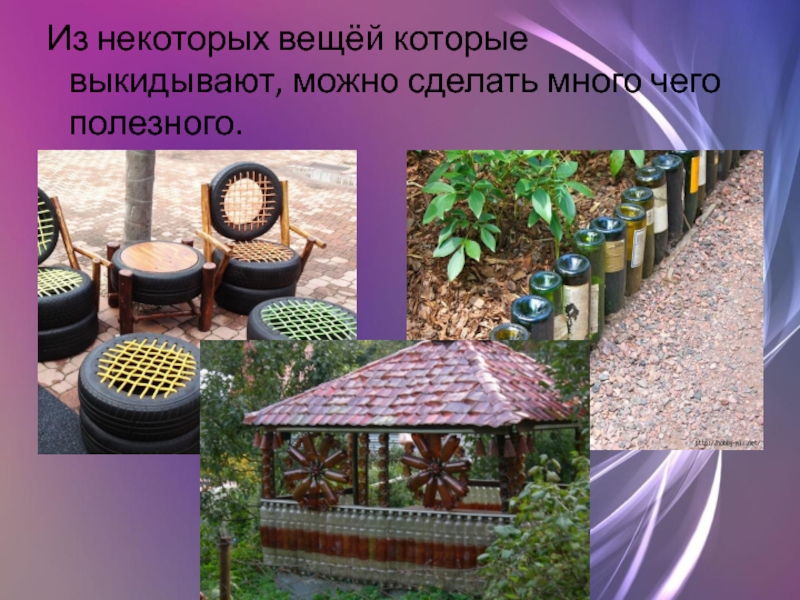 Слайд 22 Из некоторых вещёй которые выкидывают, можно сделать много чего полезного.