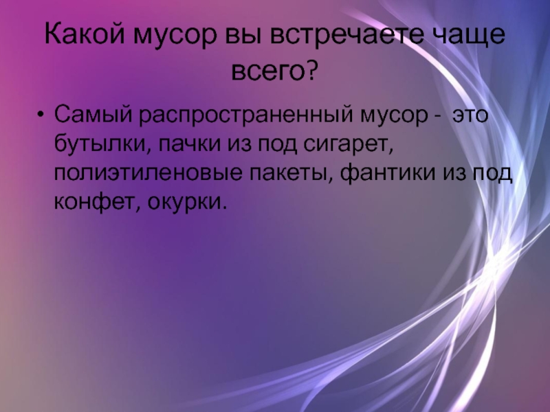 Слайд 20Какой мусор вы встречаете чаще всего?