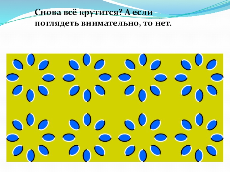 Слайд 8Снова всё крутится? А если поглядеть внимательно, то нет.
